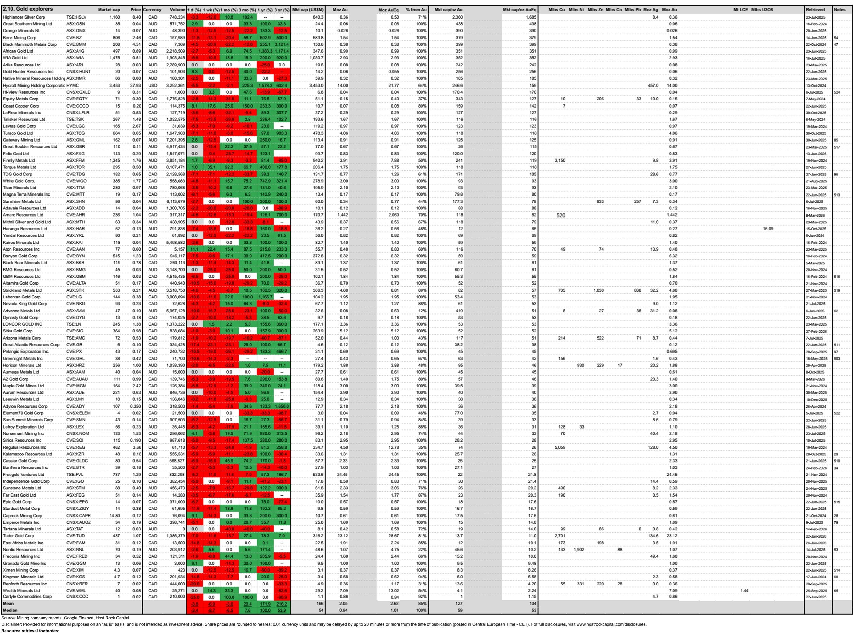 This past week’s top & bottom metal price and mining company peer group movers include: