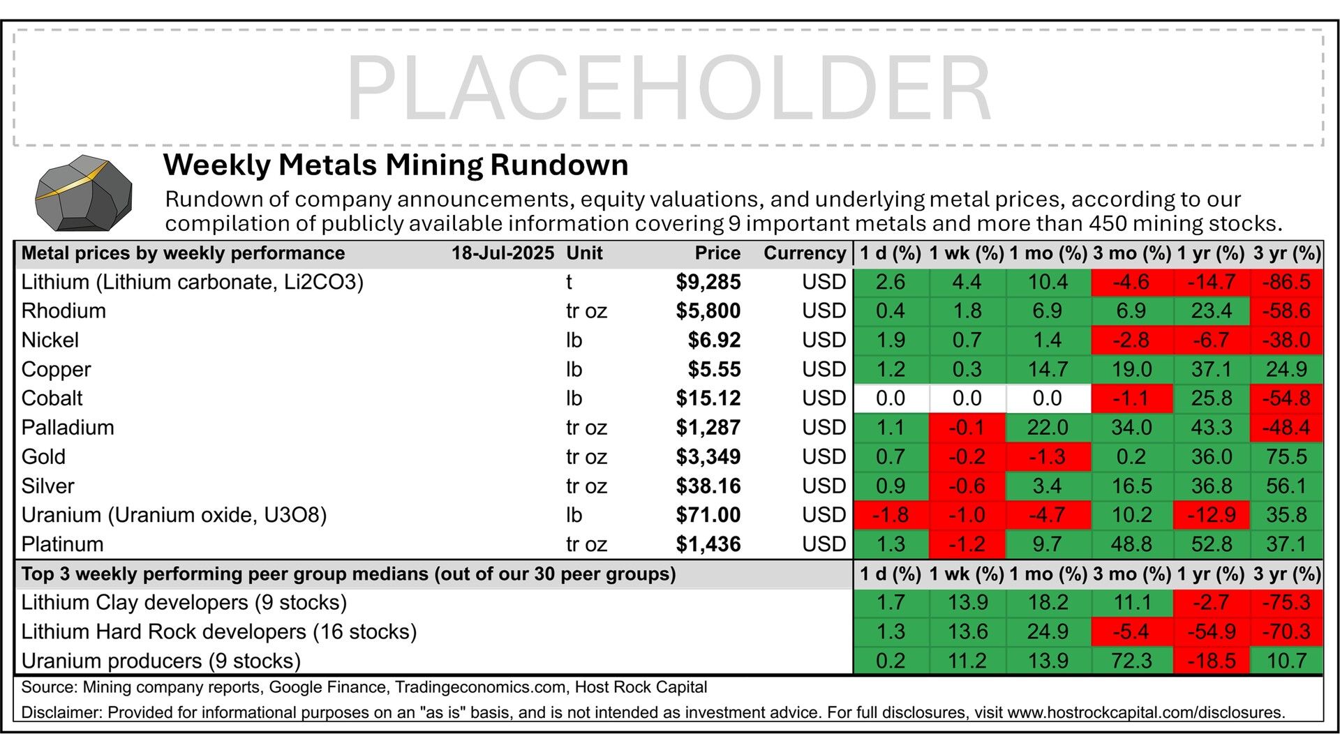 - Weekly Metals Mining Rundown for Week Ending 18 July 2025