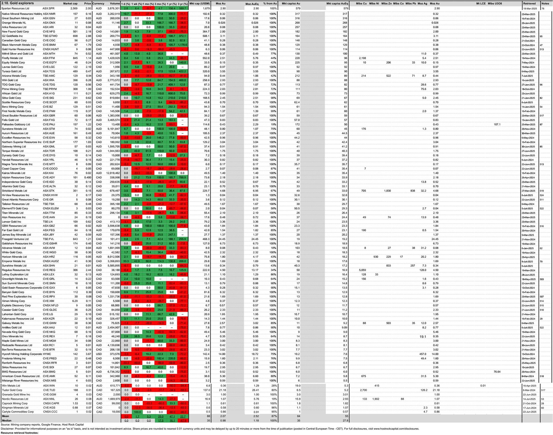 This past week’s top 40 performing metals mining stocks (out of Peer Table’s 488) include (share price rounding errors apply, as sourced from Google Finance):